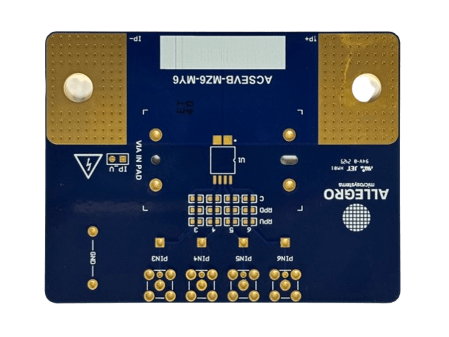 This bare evaluation board offers a method for evaluating Allegro current sensors in a lab environment. This MZ/MY current sensor evaluation board (ACSEVB-MZ6-MY6, TED0004281) is intended for use with any MZ-6 or MY-6 package (6-pin fused-lead SOIC) Allegro Hall-based or TMR based current sensors.