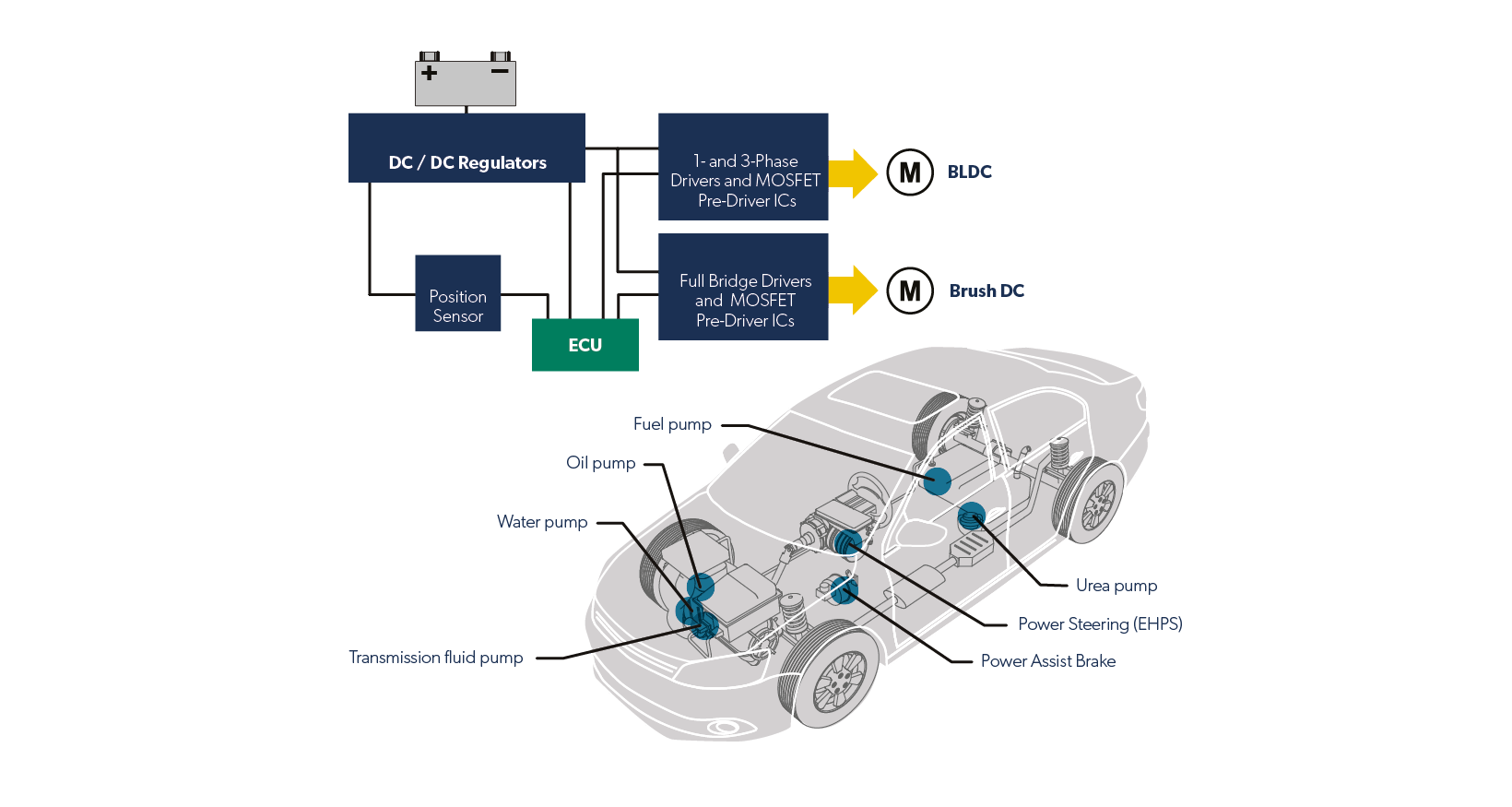 Allegroのブラシ付きおよびブラシレスモータドライバ、電流センサ、位置センサのフルラインナップで自動車用ポンプの駆動性能を向上させます
