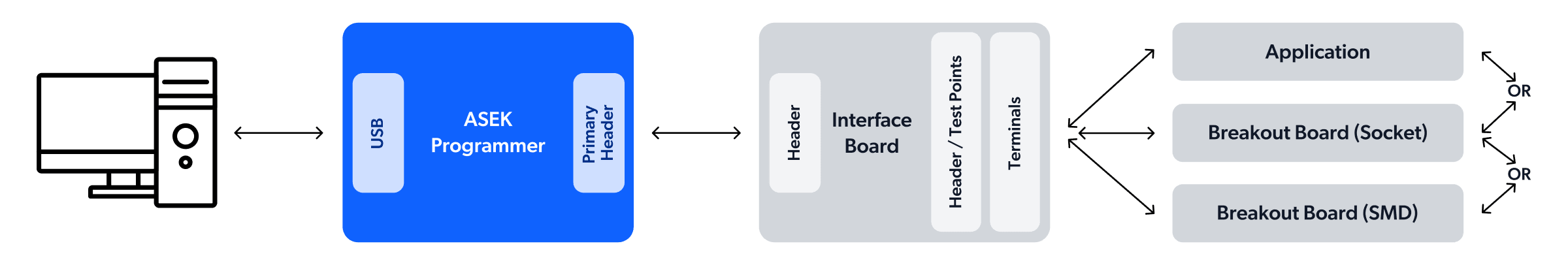 This unboxing video for the ASEK-30 programmer shows the ease of use of using the programmer and connecting applicable interface and device break out boards.