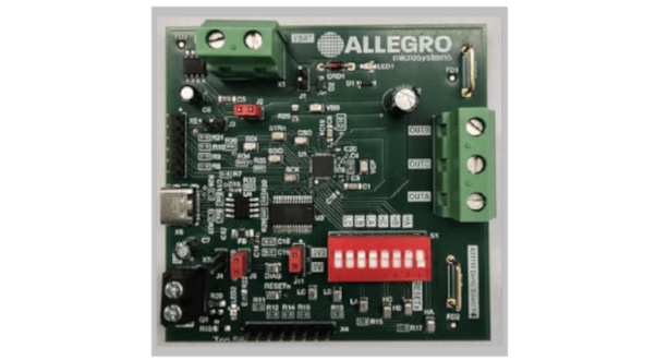 The APEK89110 is a full-featured evaluation board for the A89110, an AEC-Q100 qualified 3-phase gate driver for automotive motors. It provides an easy-to-use solution for testing the IC's wide 4.5 V to 40 V operating range, programmable gate drive for EMC control, and integrated diagnostic features via SPI.