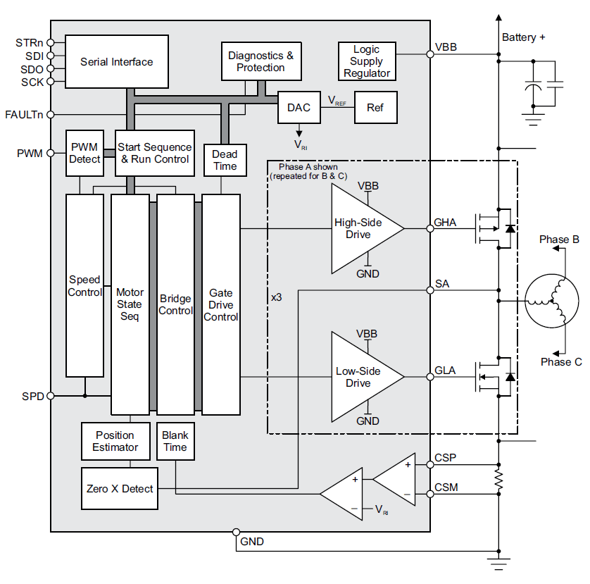 - 三相无传感器无刷直流电机控制的FET驱动器